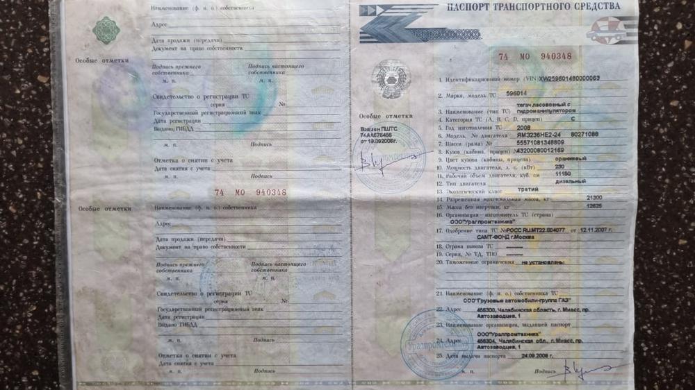 Рама с документами тягач лесовозный с гидроманипулятором 596014, 2008 г.в. цена по запросу